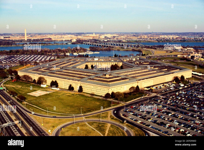 Aerial view of the Pentagon, headquarters of the U.S. Department of Defense in Washington, D.C